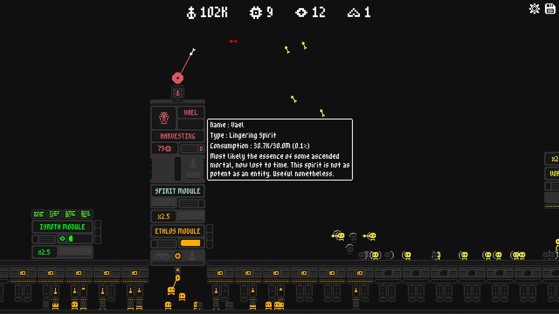 Manage a mysterious machine as it summons and consumes eldritch entities in this incremental game. Every entity consumed makes the machine more powerful, and unlocks new mechanics.